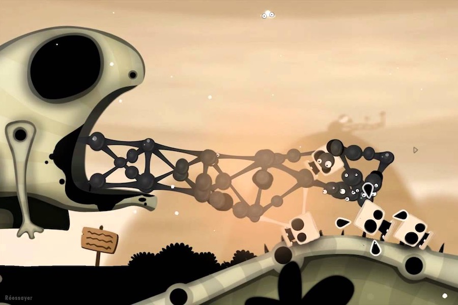 — Была интересная игра World of Goo. В чём она уникальна? Там такая механика, что мы должны из чёрных точечек, маленьких живых объектов с маленькими смешными глазками, которые и зовутся Goo, строить различные конструкции для того, чтобы выполнить какую-то цель уровня. Она зацепила меня прежде всего тем, что, исходя из того, что я вам уже рассказал, игра должна быть довольно позитивной и с позитивным визуалом, но она выполнена в достаточно мрачных тонах. Тем не менее механика очень интересная, поэтому я бы, наверное, точно отнес это к таким уникальным объектам, уникальным видеоиграм, потому что похожих я больше не видел.
